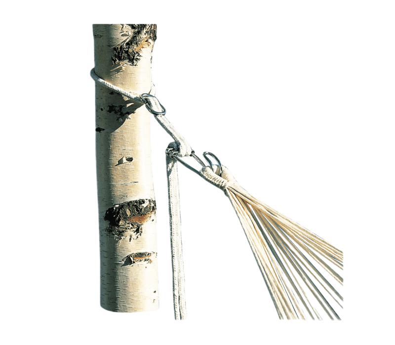 Bo-Camp bevestigingsset voor de hangmat, belastbaar tot 160 kg. De set bevat twee touwen met een lengte van elk 3,8 meter voorzien van een stalen haak.