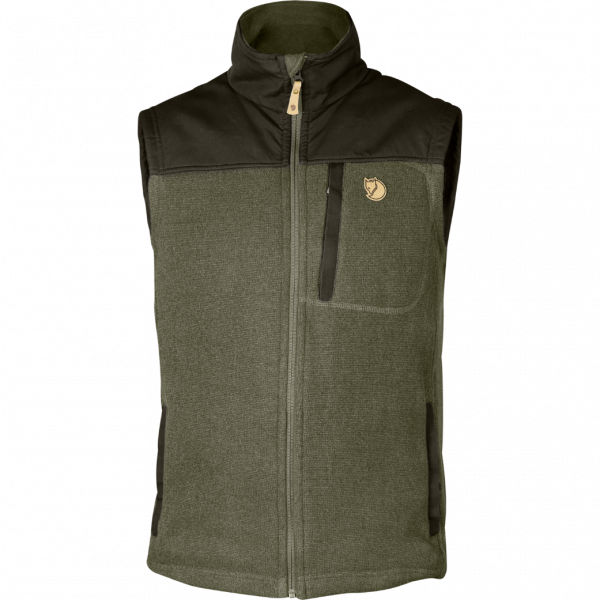 Dit grote gebreide fleecevest van Fjällraven heeft een comfortabele pasvorm. Het vest kan worden gedragen als een warme tussenlaag tijdens het skiën of om in te ontspannen thuis, in de tuin of tijdens een wandeling.