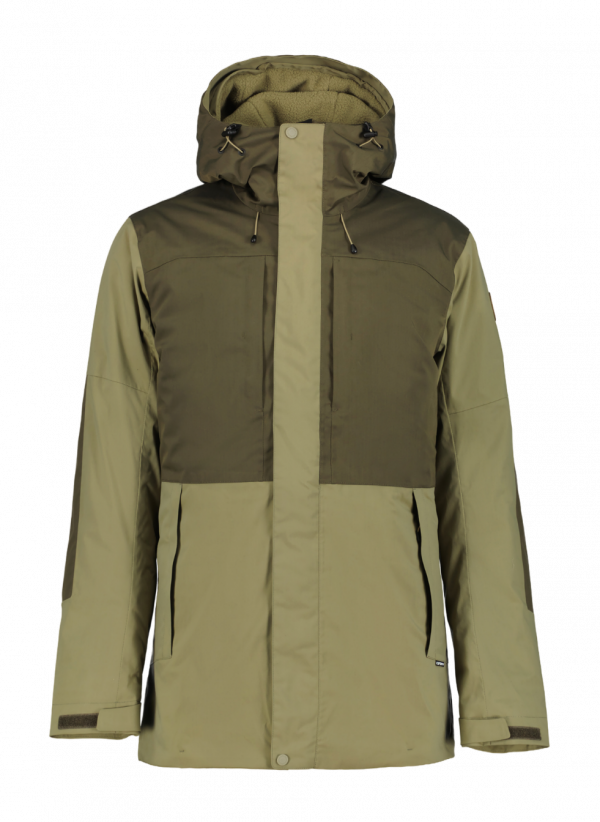 De Midvale Jas van Icepeak is een warme herenjas voor de winter. De jas heeft een vaste en verstelbare capuchon, verstelbare manchetten en meerdere zakken op wat spullen in op te bergen. Met een waterkolom van 10.000 mm is de jas waterdicht dus een regenbui houdt jou niet tegen.