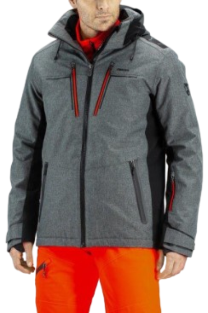 De Ostino heren Ski-jas van Falcon heeft een zachte vulling om je warm te houden deze winter, getapete naden om water buiten te houden en een ingang voor het kabeltje van je telefoon, een mouwzakje voor je skipas, een afneembare capuchon en een sneeuwvanger die je eruit kunt halen.