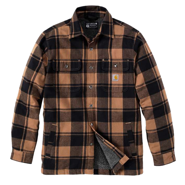 Trotseer de kou met deze heerlijk comfortabele Relaxed Fit Flanel Blouse van Carhartt. De blouse van flanel met stretch geeft je voldoende bewegingsvrijheid om bijvoorbeeld hout te hakken voor bij het kampvuur of sneeuw te schuiven na een goede sneeuwbui. De zachte sherpa binnenvoering zorgt voor extra warmte. Dankzij de relaxte pasvorm is deze blouse met drukknopen gemakkelijk als laagje of op zichzelf te dragen. Belangrijke spulletjes kunnen mee in de borszakken met druknoopsluiting, steekzakken of binnenzakken. Met verstelbare manchetten en driedubbel gestikte hoofdnaden!