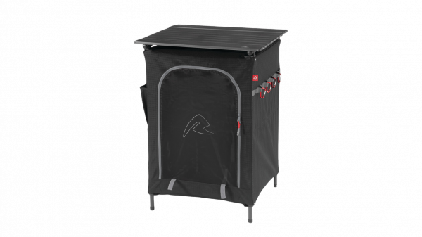 Deze opbergkast staan in een handomdraai! Geen ingewikkelde montage nodig om hem op te zetten. Hij is voorzien 2 zijzakken, 1 groot mesh zijvak, 4 haken om spullen op te hangen en 2 dichte planken. Met de gaasdeur kun je de bovenste plank wegritsen. Het werkblad is oprolbaar én makkelijk afneembaar.